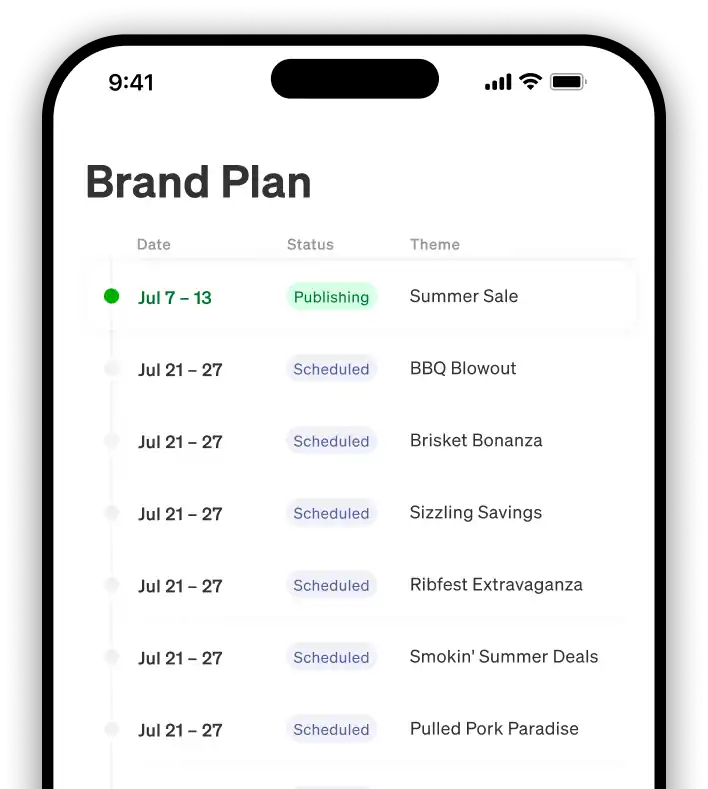 Preview next week’s topics, channels, and cadence. Make any changes, and let Blaze handle execution, publishing, and optimization.