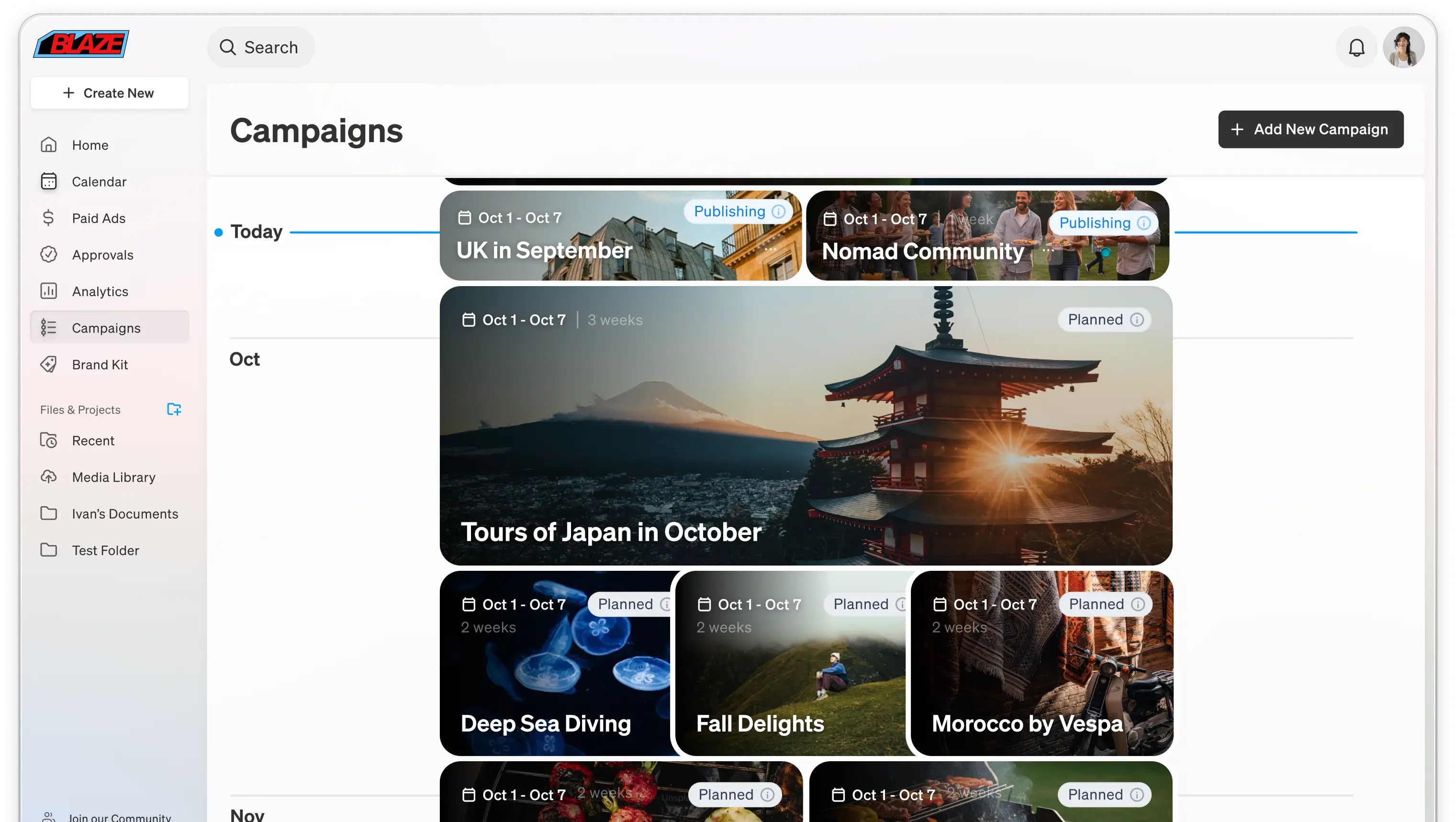 Blaze plans, creates, and posts campaigns across social media, blogs, newsletters, and ads- keeping your marketing calendar full and your brand everywhere.